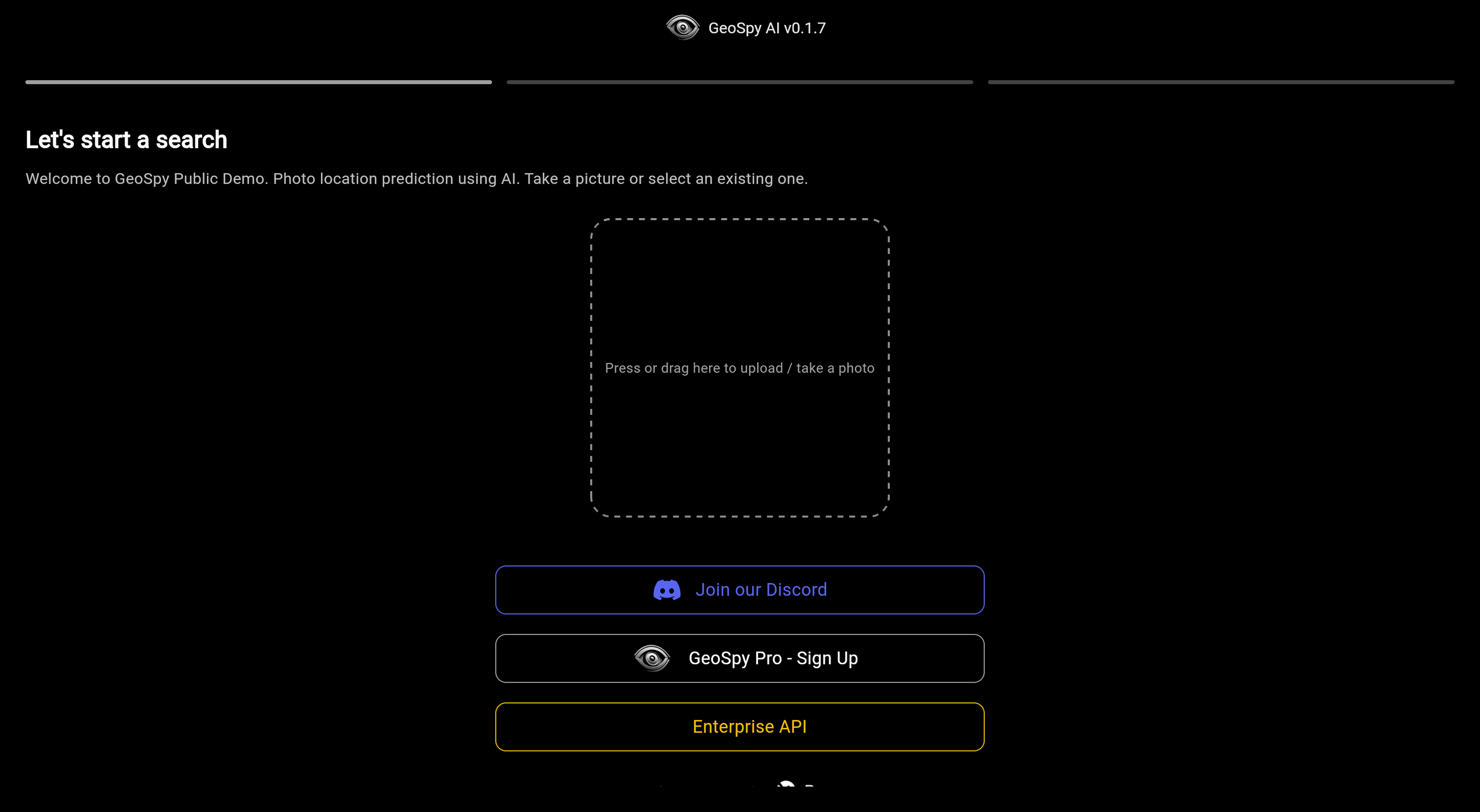 Bring the API, demo upload, and results into a single surface so GeoSpy feels like one product — not a set of disconnected pages.